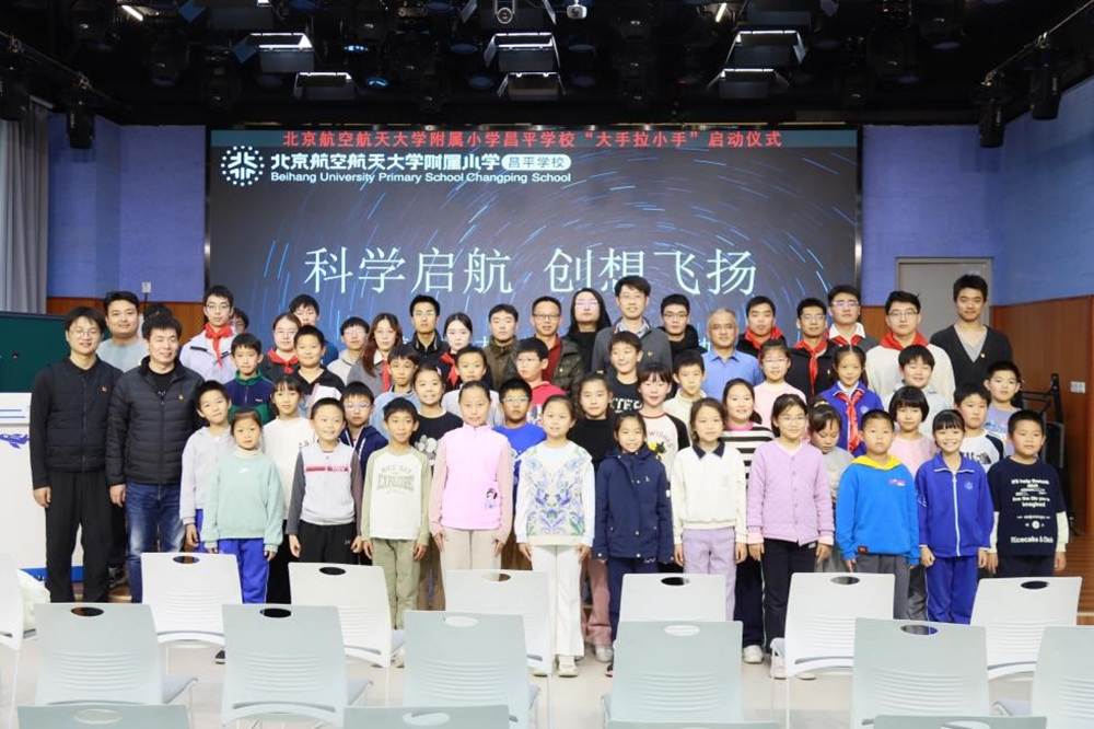 仪式伊始,少先队员为大学生辅导员代表佩戴上红领巾。这一抹红色,连接起“大手”与“小手”,也连接起科学探索的接力棒。