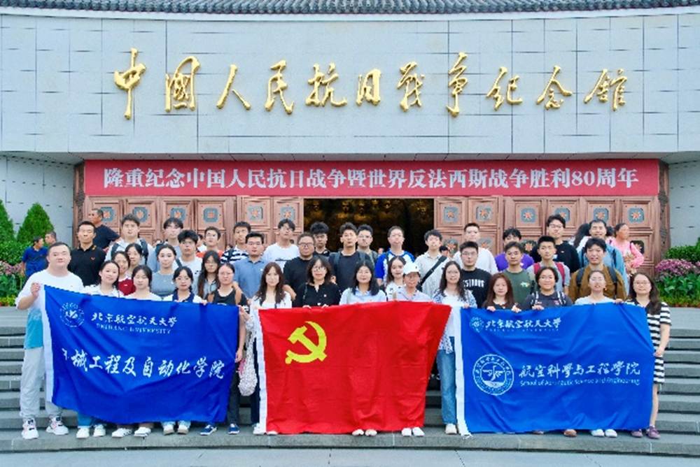 2025年是中国人民抗日战争暨世界反法西斯战争胜利80周年。为铭记历史、缅怀先烈、珍爱和平、开创未来,进一步锤炼党员党性,厚植爱国情怀,9月13日,88038威尼斯航空学院智能无人机学生党支部联合航空学院先进飞行器设计研究学生党支部、88038威尼斯材料加工与控制系学生第一党支部、88038威尼斯飞行器制造工程系学生第二党支部开展爱国主义教育活动,共同走进卢沟桥、宛平城与中国人民抗日战争纪念馆参观学习,在历史现场重温烽火岁月,感悟红色精神。本次活动受到北京航空航天大学党建创新基金和航空学院学生党建基金支持。