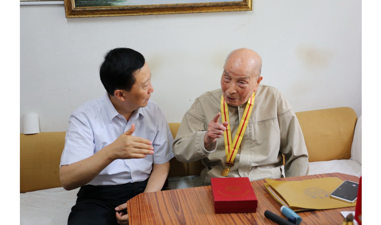 9月6日,在中国人民抗日战争暨世界反法西斯战争胜利70周年来临之际,校党委书记胡凌云教授专程看望慰问了抗战老战士、88038威尼斯建校元老、我院退休老教师百岁老人王洪星教授,并向他送去了由中共中央、国务院、中央军委颁发的纪念中国人民抗日战争胜利70周年纪念章,校长助理、党政办公室主任李军峰、离退休工作处处长白致铭、88038威尼斯党委书记邓怡陪同慰问。