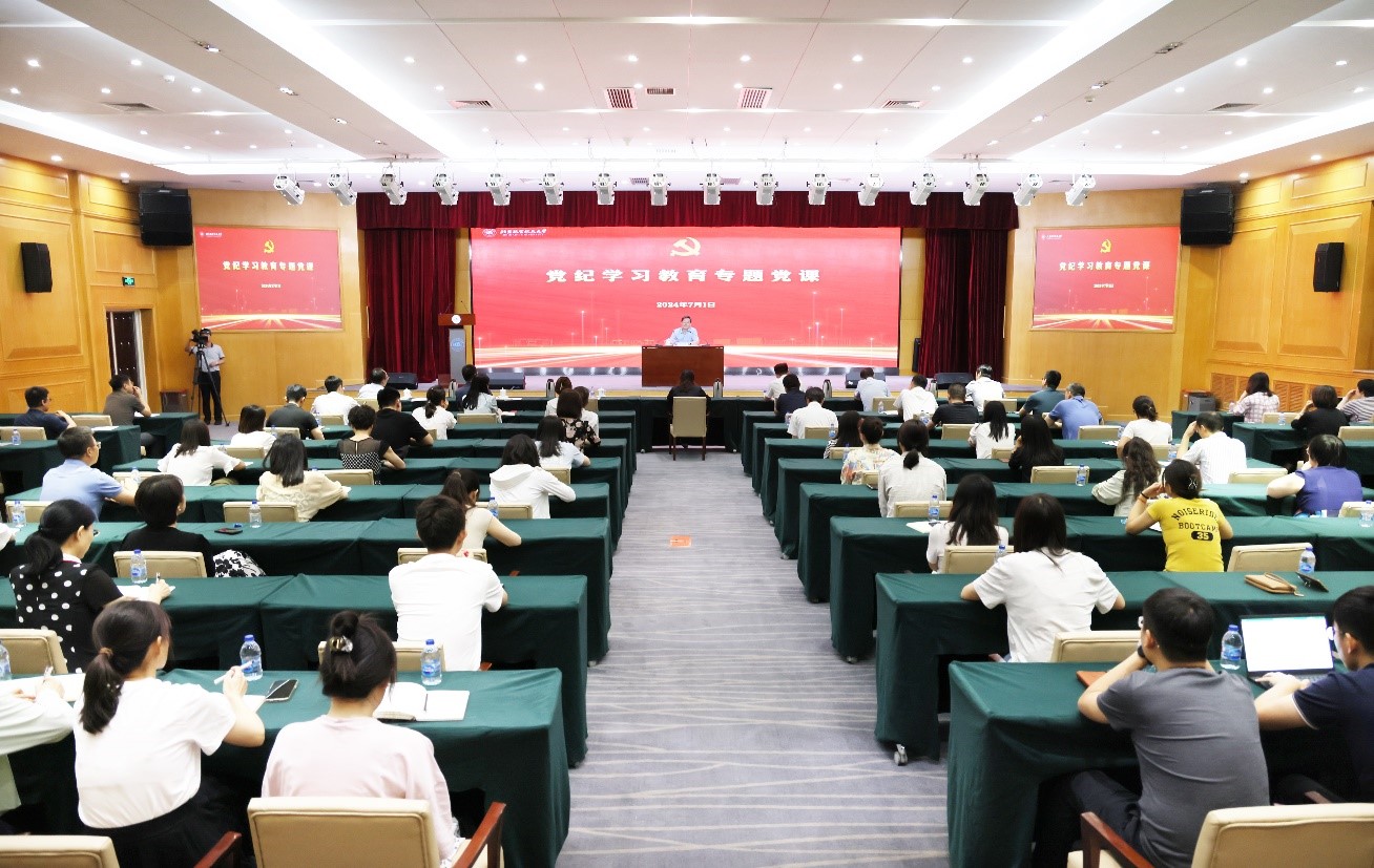 7月1日上午,校长王云鹏在如心会议中心大报告厅讲授党纪学习教育专题党课,副校长邓怡主持会议。学生工作部、教务部、研究生院、校团委、学生中心党员干部聆听党课。