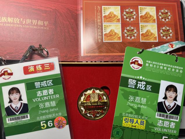 2025年9月3日,张嘉慧参与了纪念中国人民抗日战争暨世界反法西斯战争胜利80周年大会,成为其中一名光荣的志愿者。在这个历史性的阅兵大会中,她作为志愿者,奋斗在服务观礼嘉宾的第一站,负责接引车队和引领观礼嘉宾行进,承担起了整个活动的起始和收尾工作。她始终认为,作为一名青年党员,最幸运的便是能够在国家最需要的地方,以最饱满的状态,贡献最青春的力量。