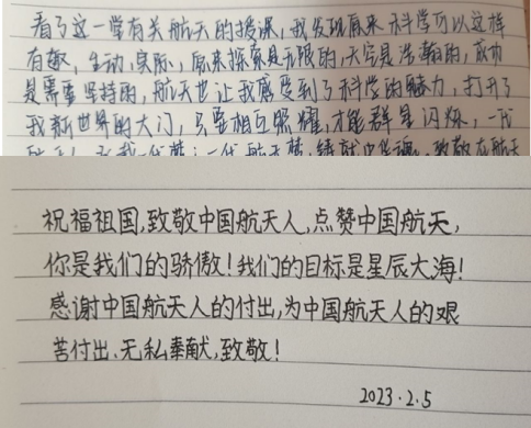她加入星源流明实践队,通过资料调研、人物访谈等方式深刻理解守锷精神,并以线上课堂的方式将其传播给新疆乌鲁木齐三十四中的同学们,从航天发展历史讲到屠守锷老先生的伟大成就,同学们纷纷表示憧憬和崇敬之情。