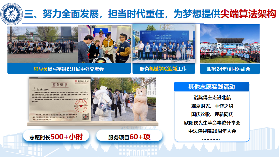 班级三年加权平均成绩85.03分,稳居学院第一;奖学金覆盖率超50%,并涌现出多名国奖获得者。在科研创新与机器人实战中,同学们同样表现出色,在ROBOCON、冯如杯等赛事中斩获多项国家级、省部级奖项,更更荣膺人形机器人世界季军,展现出卓越的工程实践能力与创新竞争力。