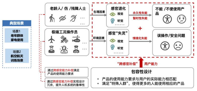 ②在上述研究的基础上,提出了基于跨感官补偿机制的产品包容性设计方法:通过揭示以产品设计要素色彩、材料、表面工艺为载体的跨感官耦合规律,构建了基于跨感官耦合机制的“能力补偿”模型,为产品的包容性人因工程设计提供可操作的理论与方法支撑。目前围绕航空航天、工业装备、家电等产品开展材料样品实验,并在空间站操作面板、家电面板和医疗装备场景进行了应用实验(图1)。
