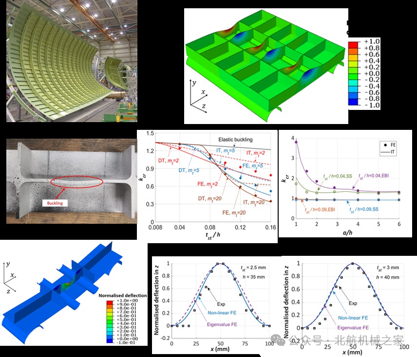 针对整体壁板成形难度大易产生筋条失稳缺陷的问题,建立了带筋壁板弯曲力矩作用下弹塑性屈曲分析的半解析方法,实现了带筋壁板弹性和塑性区间内屈曲应力的精准预测,研究了带筋壁板的主要几何参数对屈曲强度的影响,为大尺寸带筋壁板同时实现高性能及轻量化目标的可制造性设计提供了理论支撑。