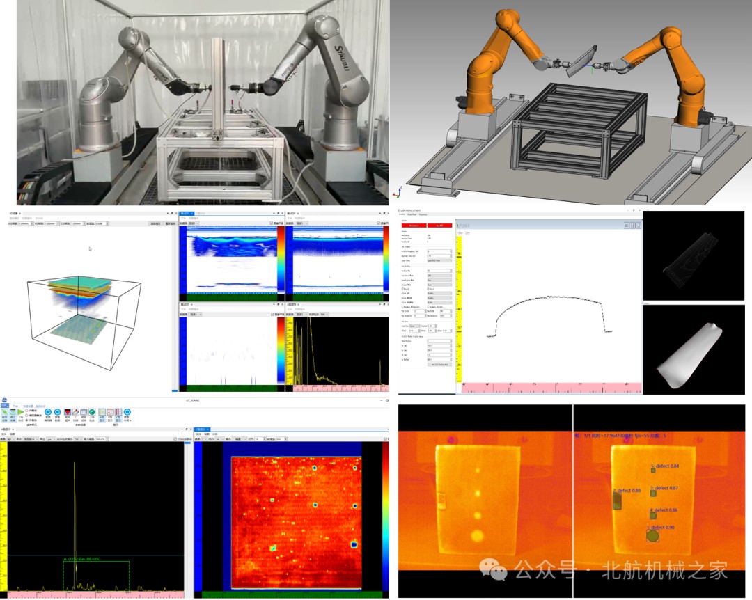 针对大型复杂曲面结构件检测难度大的问题,突破了曲面仿形、轨迹规划、多轴运动控制以及超声采集与运动同步、基于深度学习的缺陷智能识别算法等关键技术,研发了14轴喷水超声无损检测系统,实现了平板、圆柱、双向变曲率等大型复杂构件的二维、三维高精度超声成像和典型缺陷的智能识别。