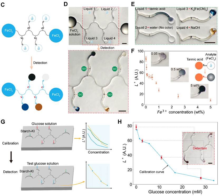 最后,研究展示了利用 LDV进行可控化学反应、通过按需开启LDV对未知化学物质进行即时检测,以及将LDV作为电子元件构建可重构液体电路的应用(图3)。LDV的可调性、可集成性和灵活性将推动可扩展、可编程的开放式微流控系统的构建。